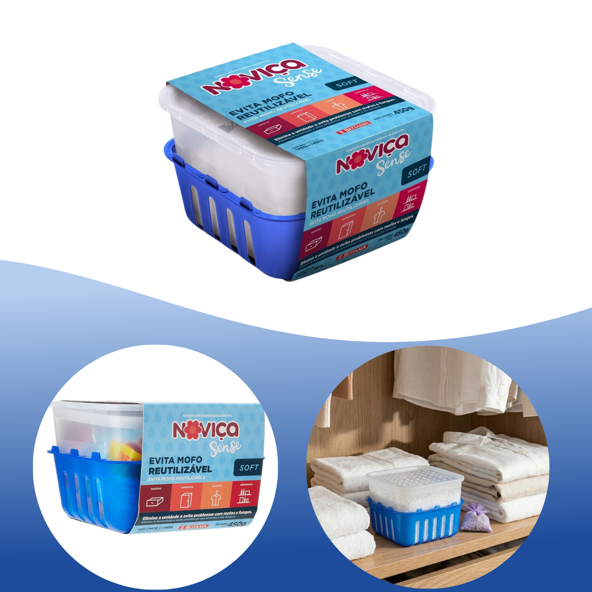 De modo eficiente e prático, o Noviça Evita Mofo Reutilizável ajuda a eliminar maus odores e