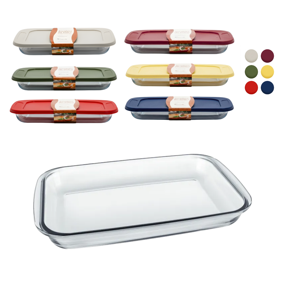 Assadeira de Vidro 2,2L Hermetica Retangular com Tampa Casavita.