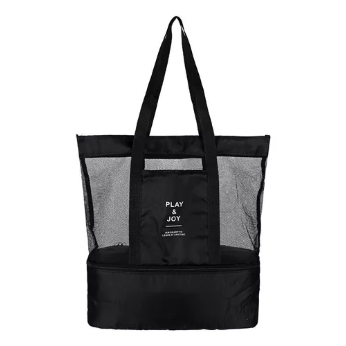 Bolsa de Praia de Rede com Compartimento Térmico Preta