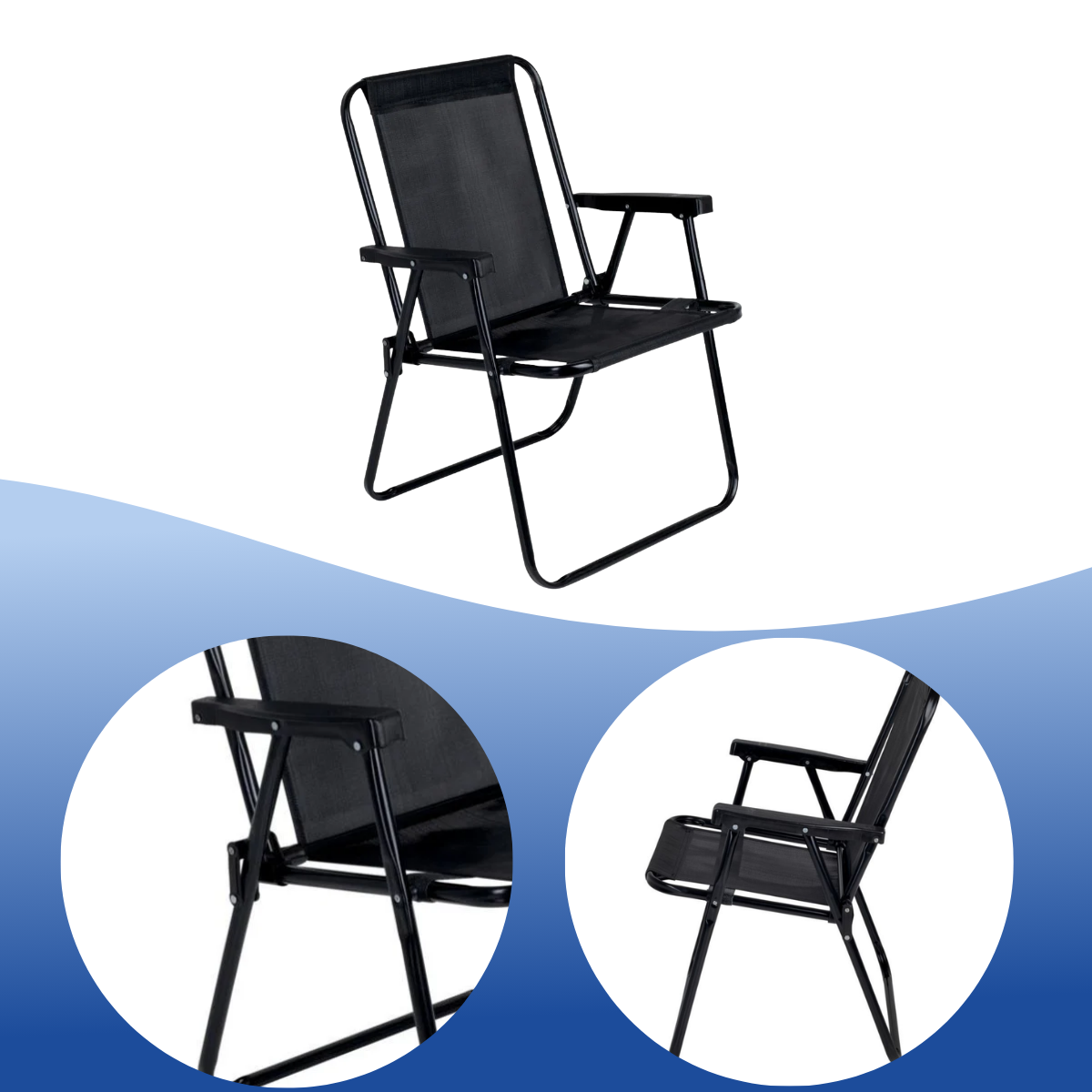 Ideal para salas de estar, varandas, parques e campings, oferece resistência e durabilidade, suportando até 100 kg. Sua estrutura em tubos de aço com pintura epóxi preta garante estabilidade e proteção contra corrosão, enquanto a tela em polietileno proporciona conforto e um visual moderno.