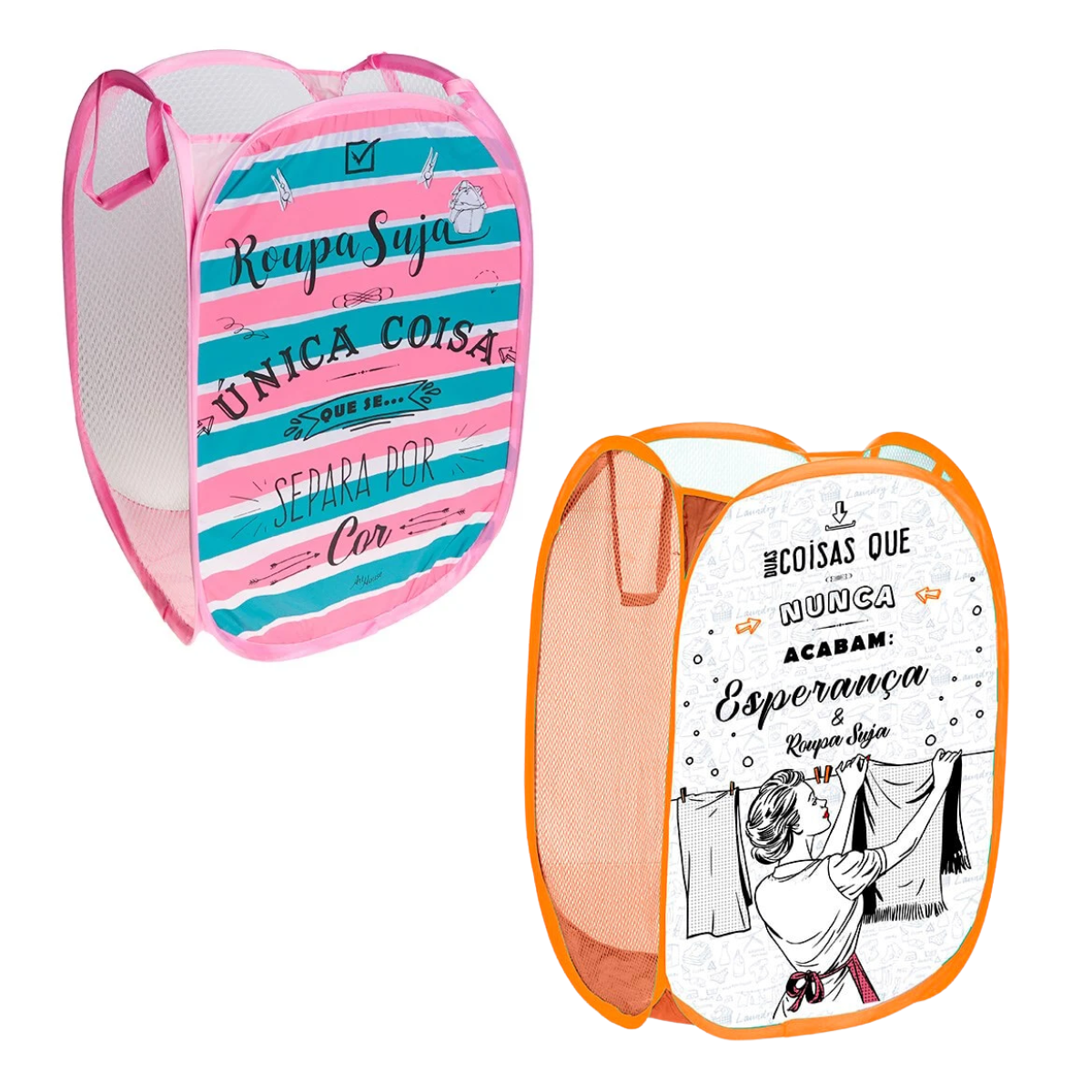 Cesto Organizador Frases Tela Roupa Suja Banheiro Lavanderia
