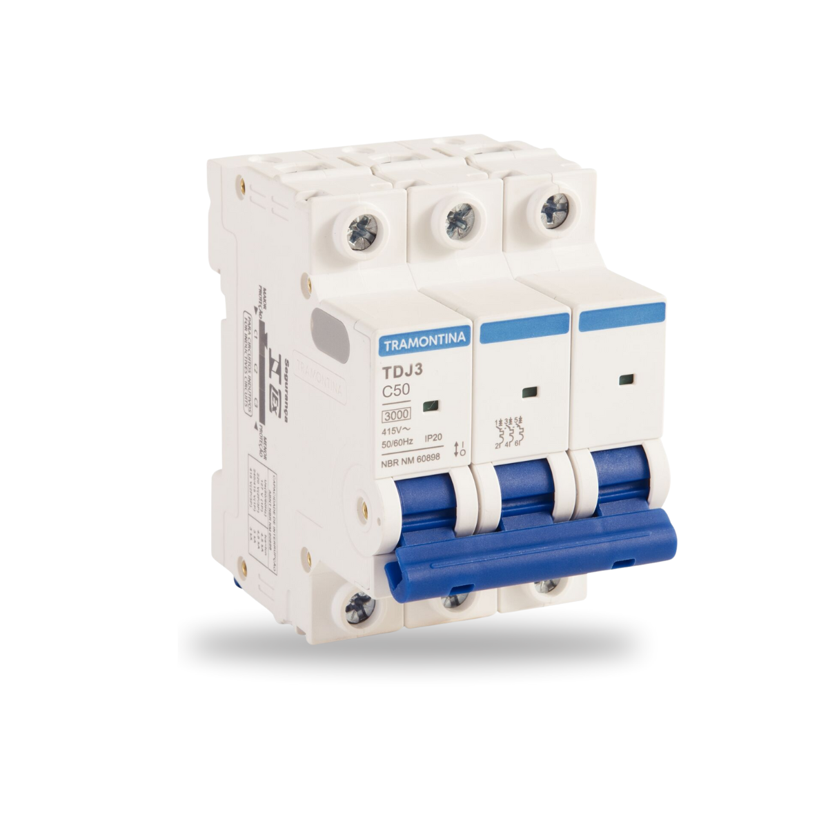 Com o Minidisjuntor TDJ3 3 P 50 A 3kA curva C Tramontina você irá garantir alta qualidade para seus projetos elétricos. Desenvolvido para garantir a segurança da instalação, ele preserva a rede elétrica e seus equipamentos em caso de sobrecarga ou curto-circuito. Ele possui janela de inspeção do estado, é instalado no quadro de distribuição e dimensionado de acordo com a potência dos equipamentos, números de tomadas e quantidade de lâmpadas. Sua montagem é individual, sem a necessidade de desmontar o barramento, o que otimiza o tempo de instalação. Um item com a qualidade Tramontina, que você já conhece e confia!