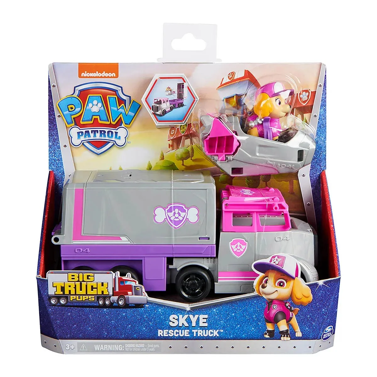 Uma missão incrível te espera. Com estes cachorrinhos corajosos são diversas as possibilidades de aventura. Há sempre uma missão para cumprir! Parta para o resgate com o veículo Big Truck Temático de cada personagem e viva uma aventura emocionante. Há 6 opções de personagens para a sua coleção: Zuma, Rocky, Skye, Marshall, Rubble e Chase.