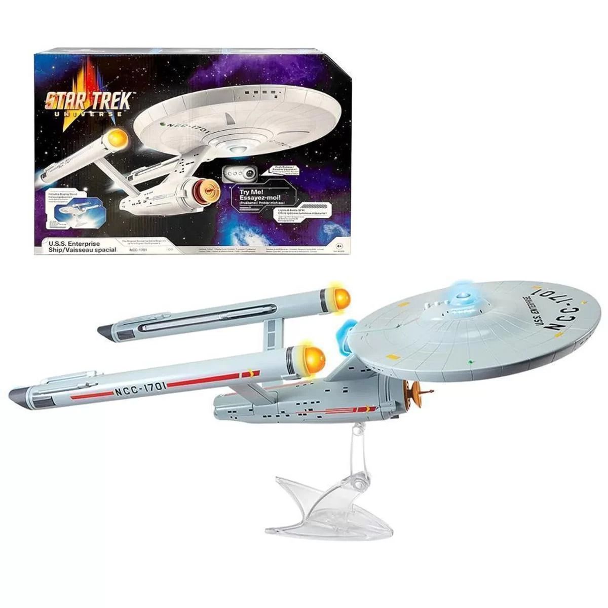 Com luzes, vários sons e frases da série original, esta nave é uma reprodução fiel que irá transportá-lo para a ponte da Enterprise em sua mente. Imagine-se navegando pelo espaço sideral, descobrindo novos mundos e civilizações em sua própria missão estelar. Aprecie o detalhamento do design da nave, desde o motor de dobra até o defletor de escudos, tudo criado para satisfazer o fã mais exigente.