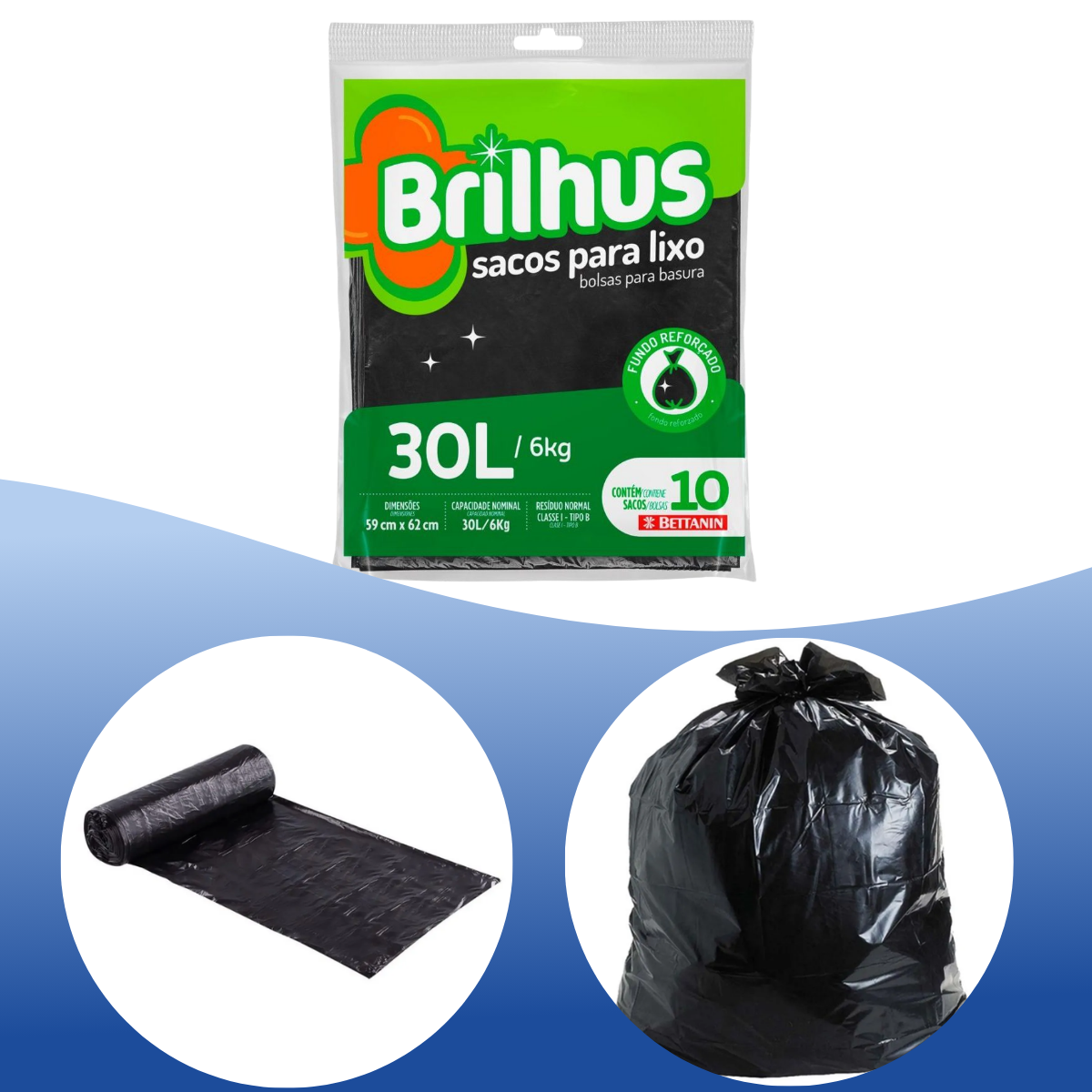 O Saco para Lixo Brilhus é a solução intermediária perfeita para o gerenciamento de resíduos em sua casa ou escritório. Com capacidade para 30 litros, ele equilibra perfeitamente o tamanho compacto com uma resistência superior, ideal para o uso cotidiano.